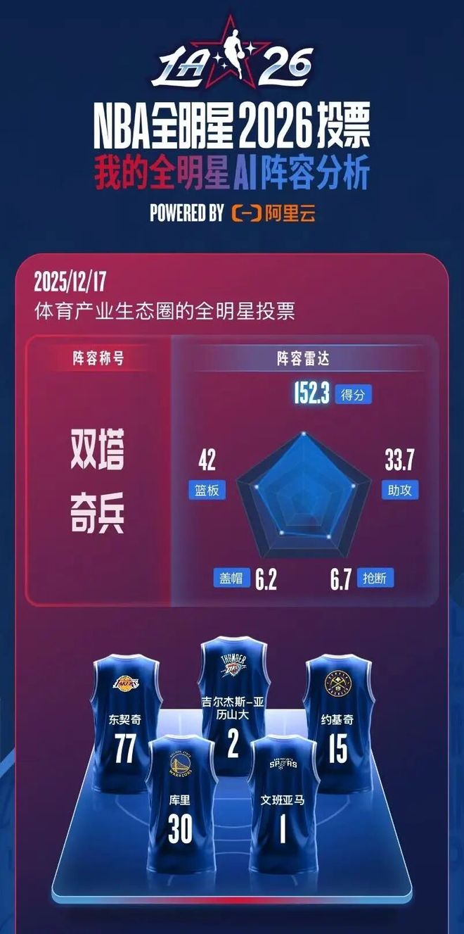 NBA全明星投票迎来升级:阿里云AI帮助每个球迷当教练