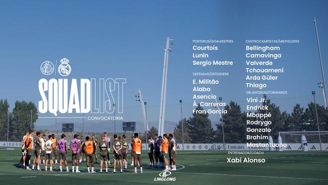 雷速体育10月18日讯 皇马官方公布了本轮西甲客场对阵赫塔费的球员名单,姆巴佩、贝林厄姆、维尼修斯、罗德里戈在列。 皇马本轮球员名单 门将:库尔图瓦、卢宁、塞尔吉奥·梅斯特 后卫:米利唐、阿拉巴、阿森西奥、卡雷拉斯、弗兰·加西亚 中场:贝林厄姆、卡马文加、巴尔韦德、楚阿梅尼、居莱尔、蒂亚戈·皮塔克 前锋:维尼修斯、恩德里克、姆巴佩、罗德里戈、贡萨洛、卜拉欣·迪亚斯、马斯坦托诺 |