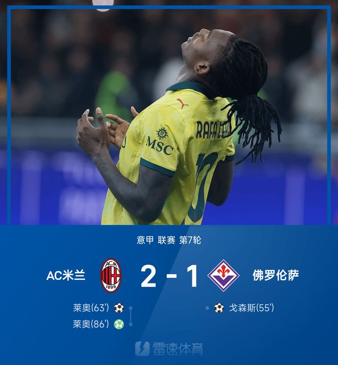 意甲战报:莱奥双响,米兰21逆转佛罗伦萨,登顶意甲榜首