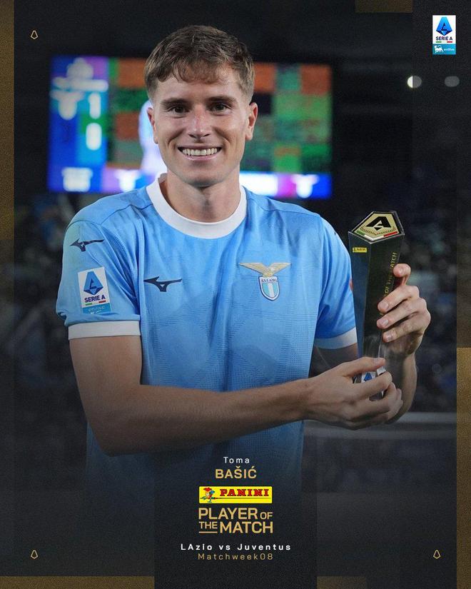 | 官方消息,托马-巴希奇当选拉齐奥对阵尤文图斯一役全场最佳。