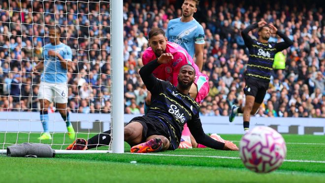 4分钟后,埃弗顿获得绝佳机会,阿克的传球太过随意,直接被恩迪亚耶抢断,后者下底传中,贝托只恨腿短,错失良机。