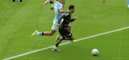 1分钟后,哈兰德完成抢断,多库却选择了保守的推射,皮克福德奋力将球扑出。半场结束,两队互交白卷。