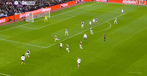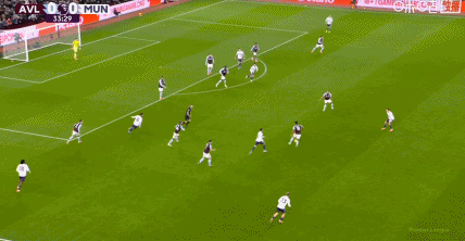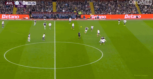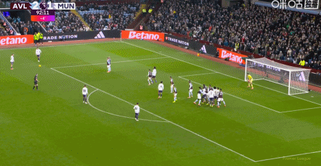 第45+3分钟,多古抢断卡什送助攻,库尼亚兜射破门,曼联1-1扳平维拉!