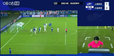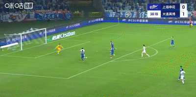 第43分钟,申花队长吴曦一人带球突入禁区,磕磕碰碰的情况下一脚射门将球打进,帮助申花扳回一分。
